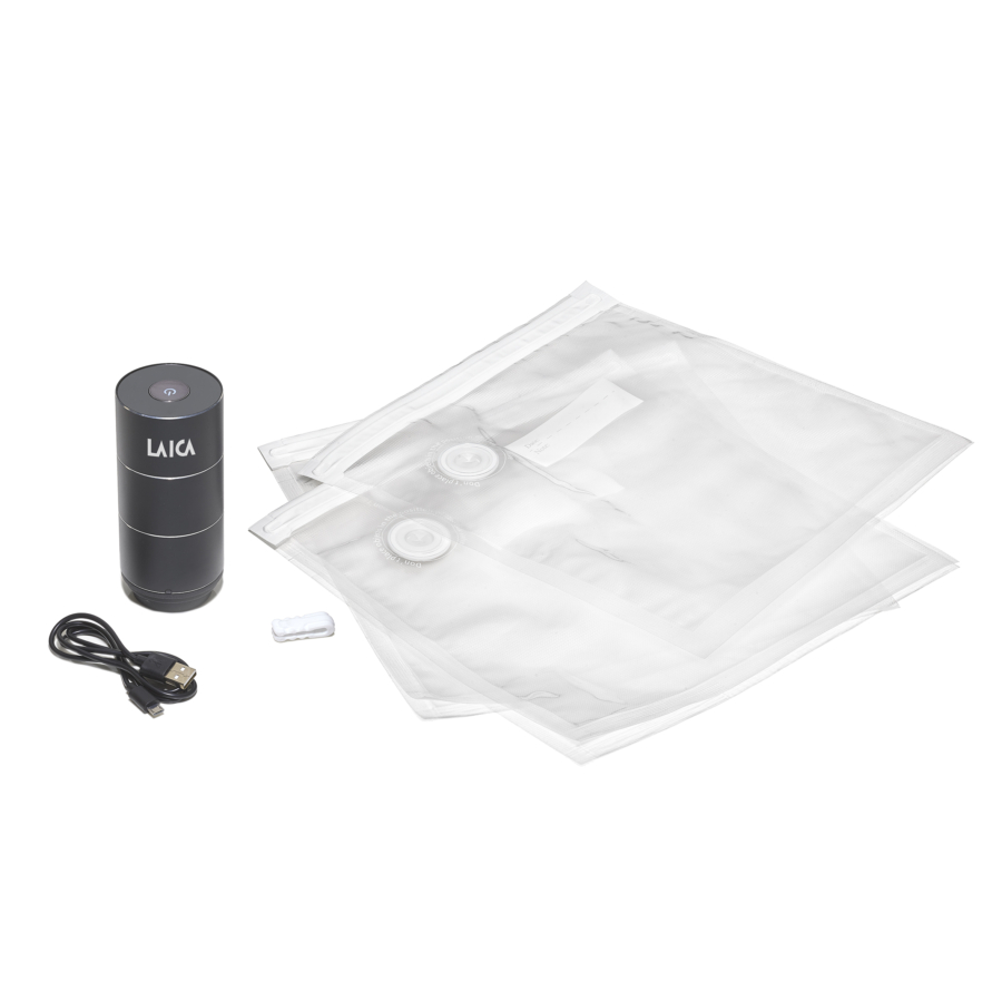 Az ételek tárolása a tartozék vákuumtasakokban vagy a LAICA VT3306 és VT3307 vákuumozható üveg edényekben (külön megvásárolhatók) is lehetséges.