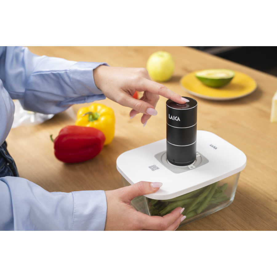 Helytakarékos megoldás, amely egyszerre biztosítja a vákuum előnyeit és a helyspórolást. A Laica vákuumpumpa kompakt mérete lehetővé teszi, hogy kis helyen, például egy fiókban tárold. Prémium minőségű anyagának és elegáns kivitelének köszönhetően nemcsak tartós, de utazásokhoz vagy üzleti utakhoz is ideális, hogy bárhol gondoskodhass az ételek frissességéről. Ráadásul a vákuumcsomagolt alapanyagok helyet takarítanak meg a hűtőben, és megkönnyítik a főzést.