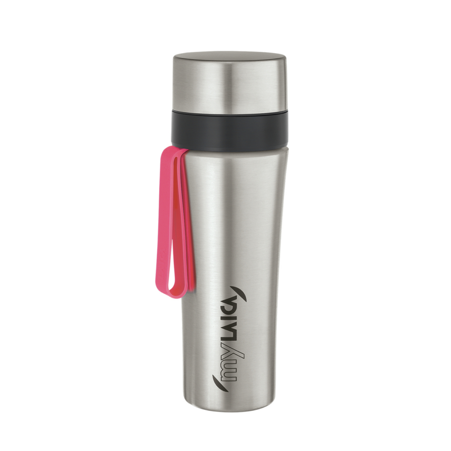myLAICA vízszűrős kulacs FAST DISK szűrővel, szálcsiszolt rozsdamentes acél, pink szilikon pánttal, 0,55 liter